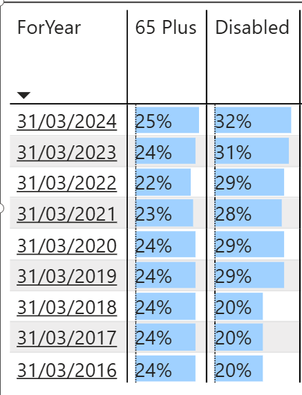 The percentage of "Disabled" Tenants has increased from 20% to 32% (+12% difference.)
