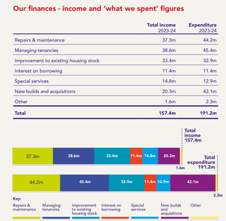 The first column shows the total expenditure for council housing and the other columns show some of the categories of expenditure.