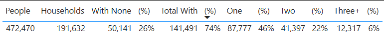 - 74% of households had access to a car/van