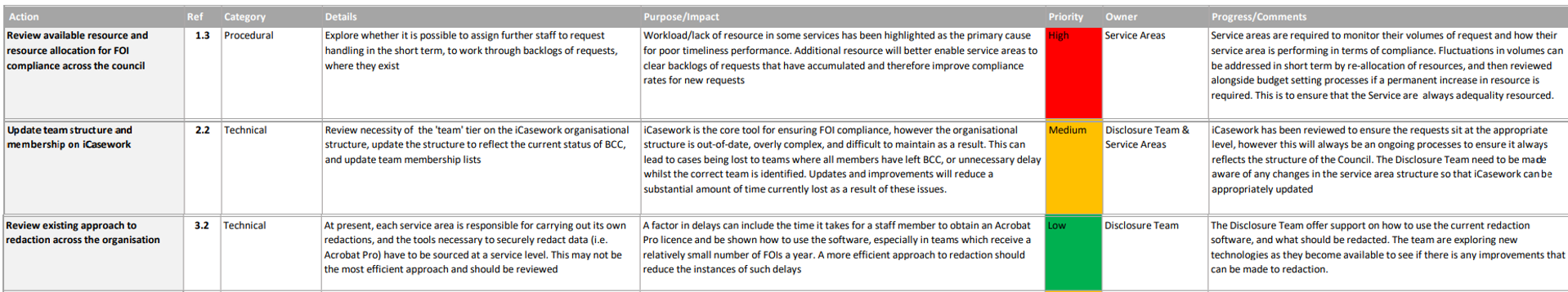 The council are continually looking to improve our processes around Freedom of Information responses. We have published an action plan on the Councils website which sets out how we are looking to improve.
