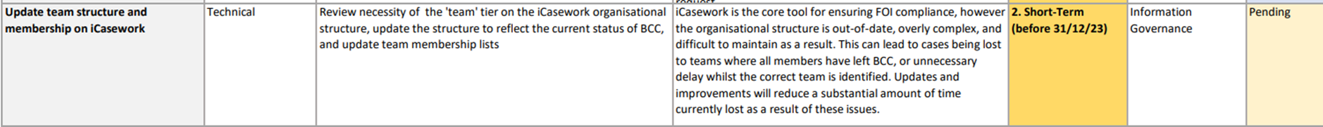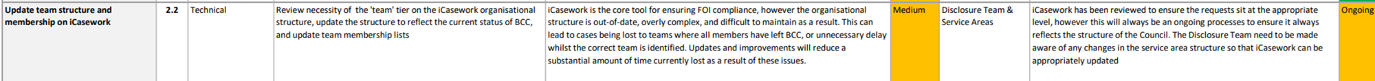 For example, this was how the "iCasework" action was described in March 2025. This makes it clear that the plan was not being progressed at this time as the plan showed that this action should have been completed by 31/12/2023.