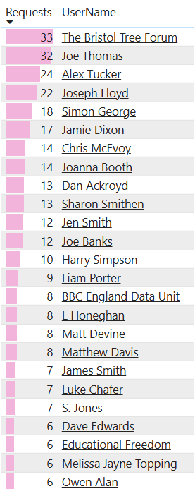 These are the people who have submitted the most FOI Requests to BCC via WhatDoTheyKnow since Jan 2024.