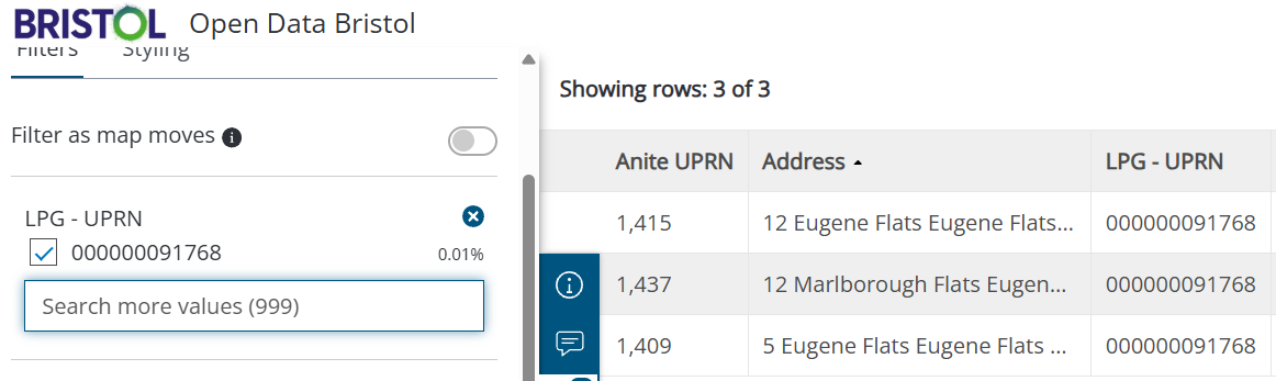 For example, there are 3 council properties with the UPRN of "000000091768".