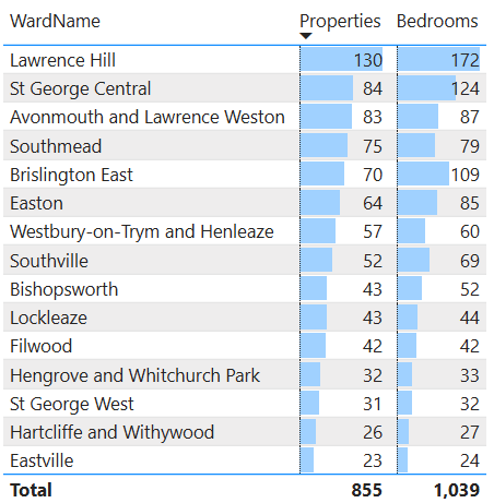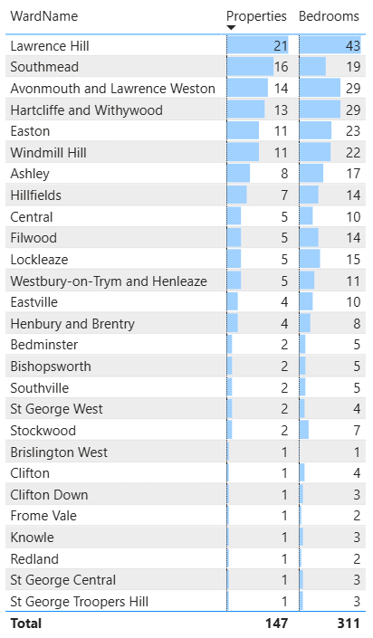There are 24 Wards where the number of Council Properties has increased since Sep 2025, 7 Wards where there has been no change, and 3 Wards where the number has decreased.