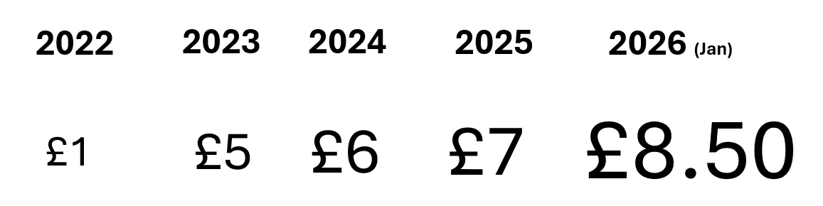 Drop off charge increased from £7 to £8.50