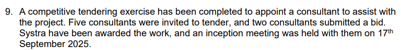 As well as being paid to produce the EBLN Monitoring Report, Systra have also been appointed to produce a report on the Workplace Parking Levy Scheme by the Transport and Connectivity Committee on 23/10/2025.