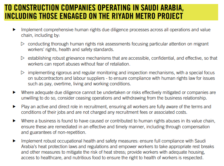 Whilst Systra are not directly mentioned in the report, Amnesty International make this recommendation: