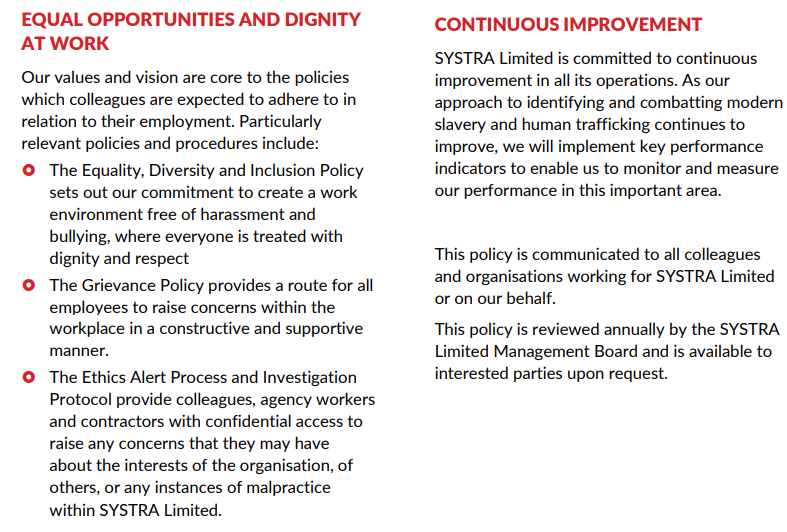 Whilst the UK section of the Systra website links to its "Modern Slavery Policy", they do not link to this policy on the Saudi Arabia section of their website.