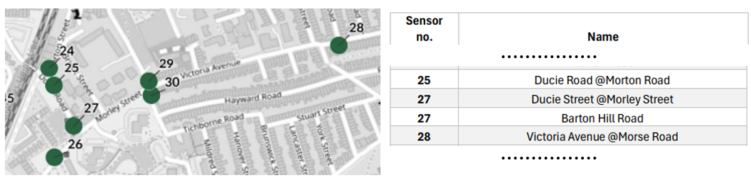 The map shows "Sensor 26", but this sensor does not appear in the table. I assume that Systra made a mistake and mis-numbered one of the "Sensor 27" rows in the table, when it should have been "Sensor 26".