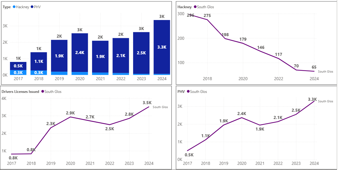 The increase in PHVs is explained by the increase in vehicles licensed in South Glos: