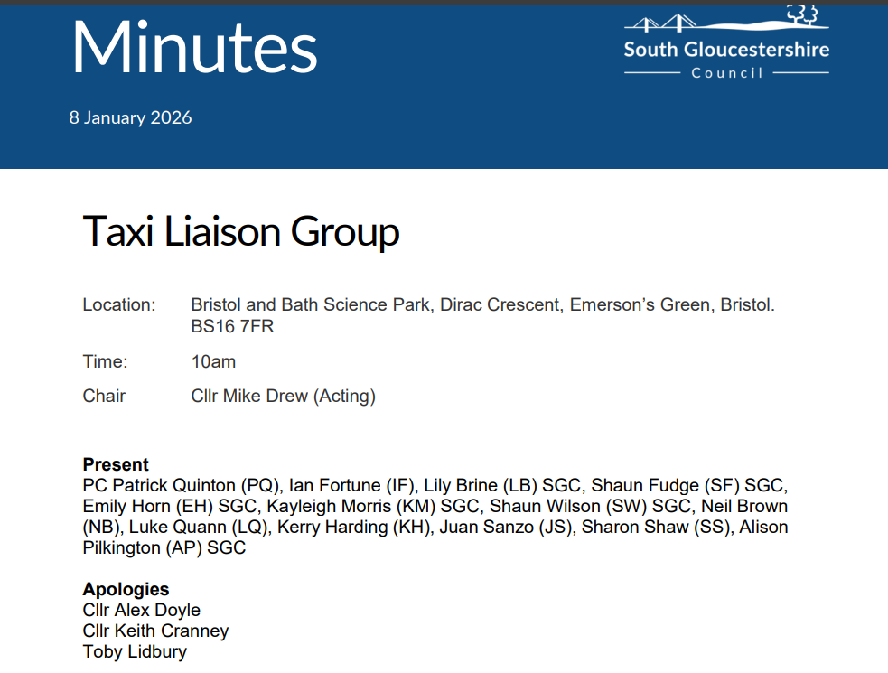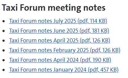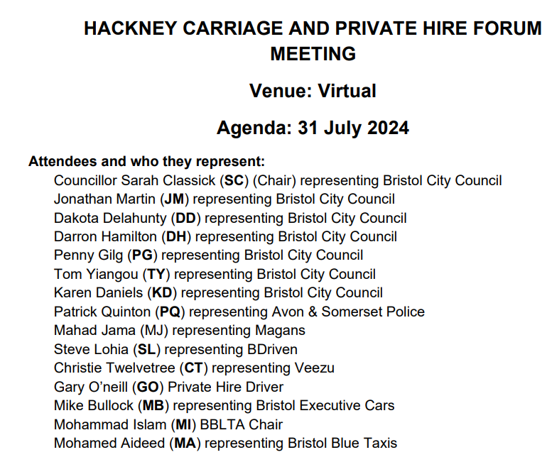 The Bristol Taxi Forum meets very infrequently. The last meeting was held in July 2025.
