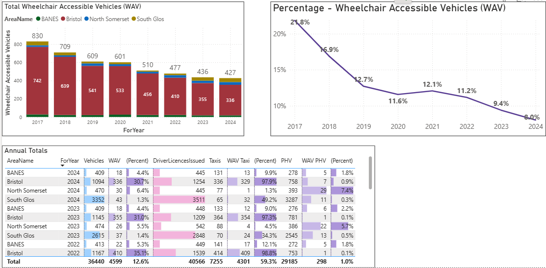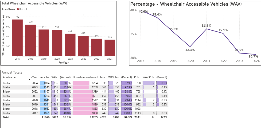 Looking at Wheelchair Accessible Vehicles (WAV) licensed in Bristol:
