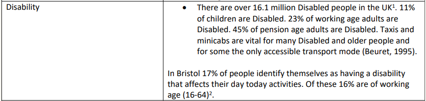 This acknowledges the vital importance of taxis for Disabled and older people, and the mitigation actions are: