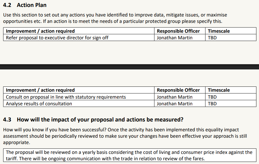 An Equality Impact Assessment was published in Jan 2025, which was related to the increase in rates for Hackney Cabs.