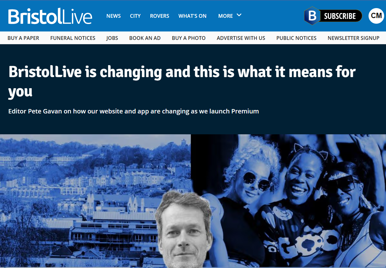 You still get adverts, but they are much less distracting than the ads that appear on Bristol Live.