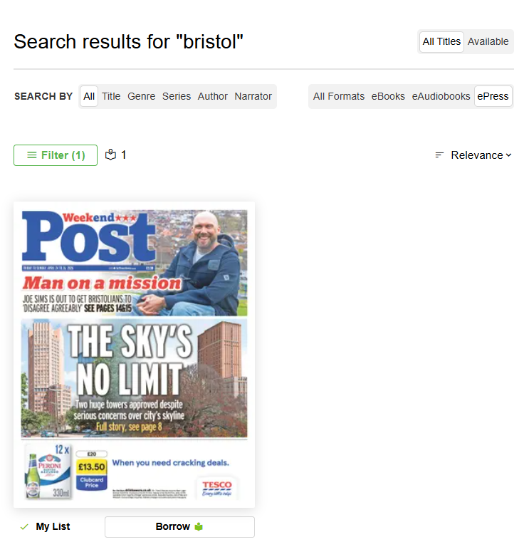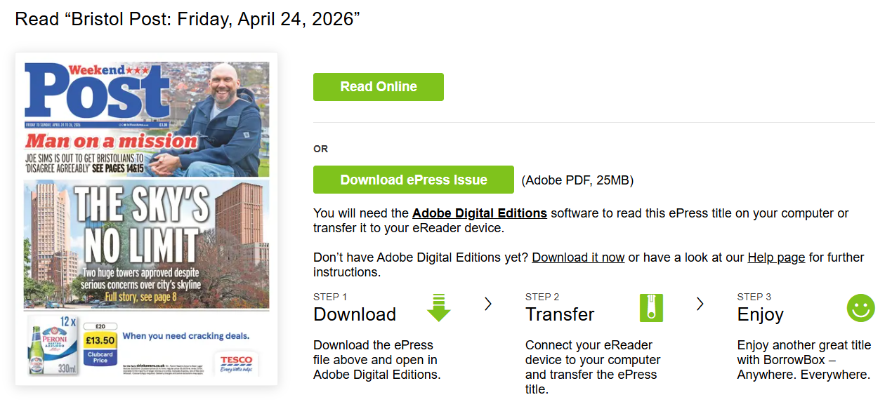 So why not take advantage of the library services that we pay for, and read Bristol Post online. There are some differences: