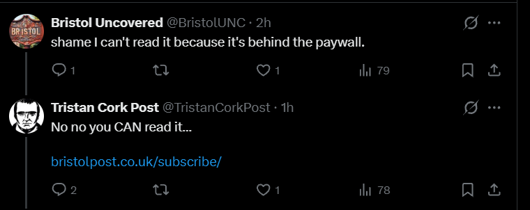 But it can be really hard to actually get to the comments on Bristol Live, and you will probably see better comments about the stories on X, Facebook and Next Door anyway.
