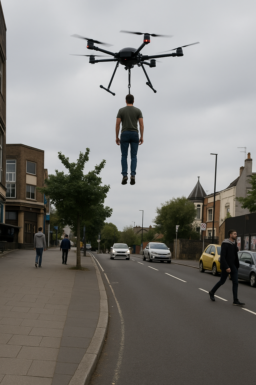 Let's embrace new technologies and use autonomous drones to lift people above the traffic.