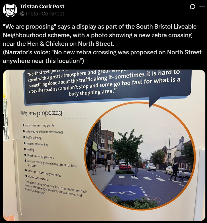 Tristan Cork attended an SBLN Consultation Meeting and pointed out that an Artists Impression of a crossing on North Street was shown, despite the fact that no such crossing had actually been proposed.