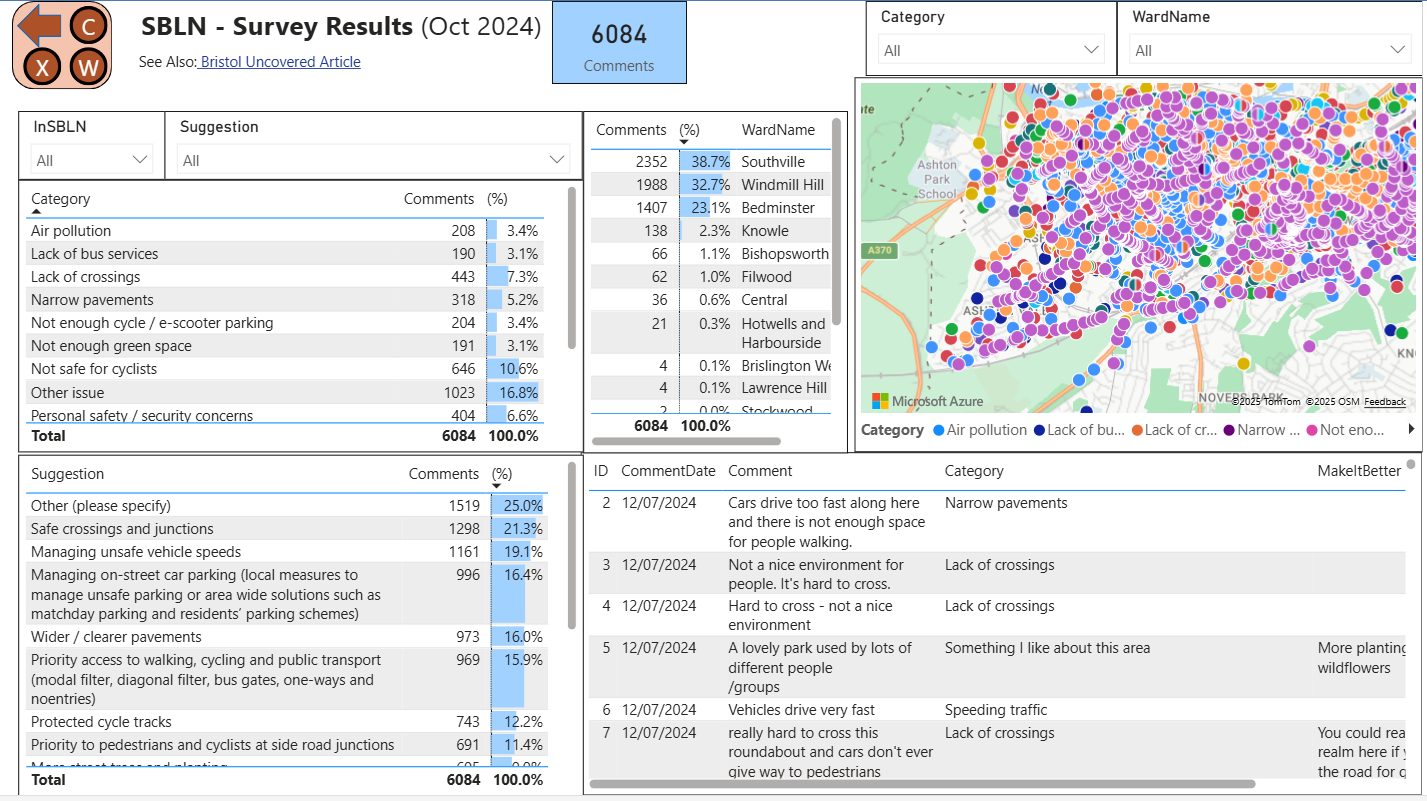 The interactive map received 6,081 comments from 1,562 different users between 5 July and 30 October 2024. On a separate survey, we received 513 submissions. These have been considered separately but have been reported to the relevant designing team. [Page 19]