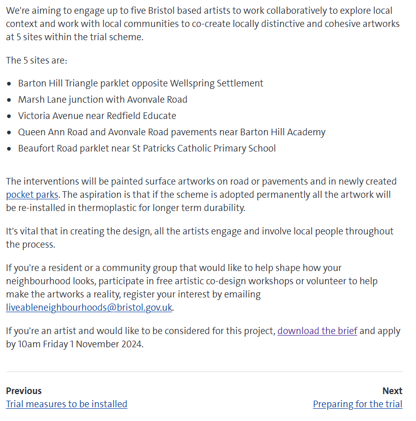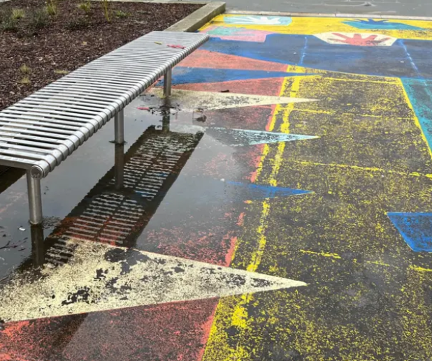 The decision to paint in road line marking paint was based on the use of the paint for other surface artworks in the city. The paint was successfully applied in 6 East Bristol Liveable Neighbourhood artworks, painted on standard tarmac surfaces between April – June 2025. All these artworks have not suffered any significant wear and tear. One artwork was vandalised and cleaned in summer 2025 using spray paint solvent and jet washing. Therefore, similar results were expected to be achieved on the standard tarmac surface at the Centre Promenade. The area was jet washed prior to painting. The paint is predicted to last for 3 – 5 years in an area with majority pedestrian movement.