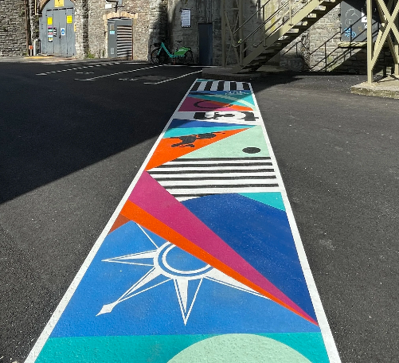 Molly Hawkins was thrilled to collaborate with TCN UK on an exciting public art installation adjacent to Bristol Temple Meads Train Station. Part of the revamp of Temple Studios & Temple 1852, the project features a stunning 60-meter-long painted floor artwork, custom-designed public seating, and two playful pelican crossings. Installed in April 2024, the aim is to transform the car park into a vibrant and engaging space, bringing colour, creativity, and a touch of playfulness to the heart of Bristol.