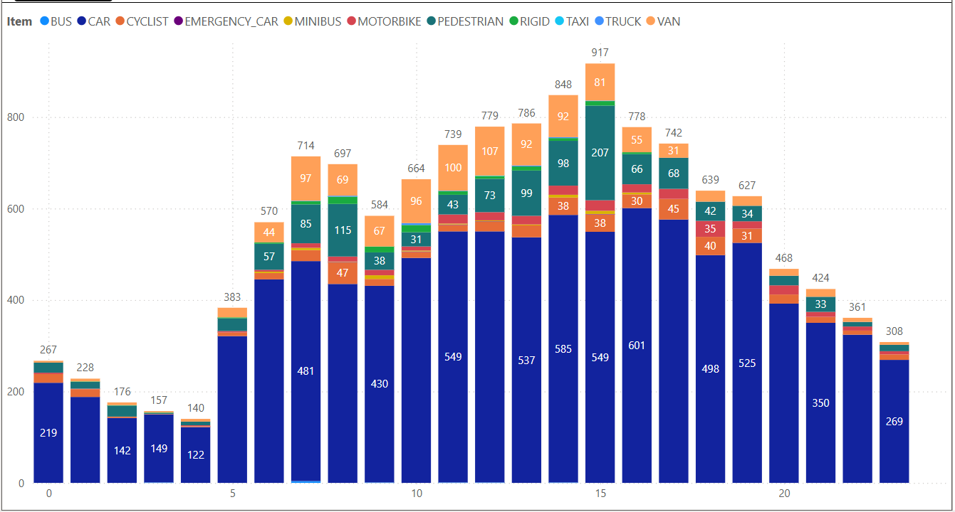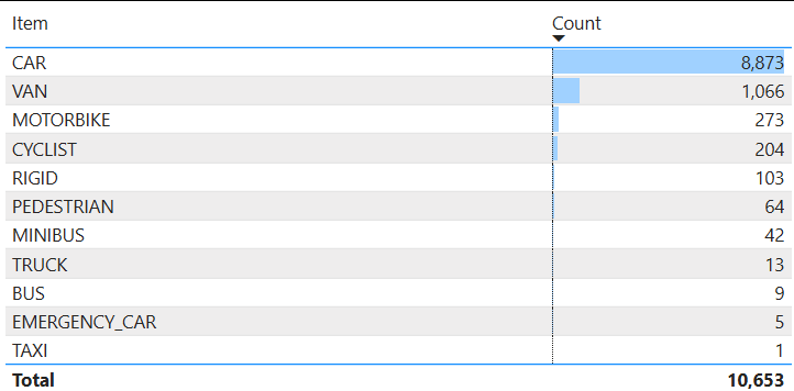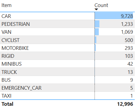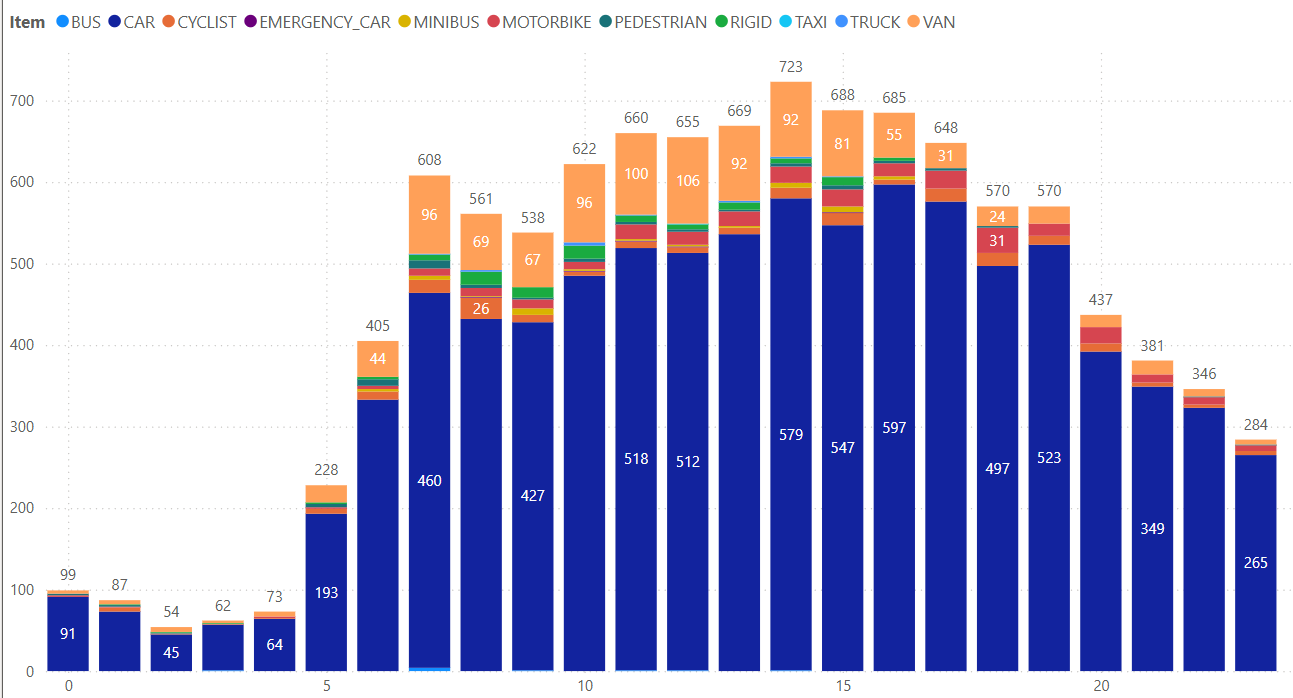 Taxis - Only Hackney Cabs are identified as "Taxis". Private Hire Vehicles are classified as "Cars". This is because the software does not analyse number plates or taxi badges and only looks at the shape of the vehicle.